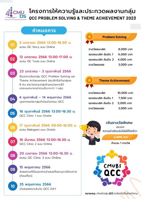 03/09/2024CMUBS นำแนวคิดกลุ่มควบคุมคุณภาพ (QCC) พัฒนาปรับปรุงงานบุคลากรต่อเนื่อง จัดกิจกรรมรับคำปรึกษาจากผู้เชี่ยวชาญ ใน QCC Clinic ครั้งที่ 3