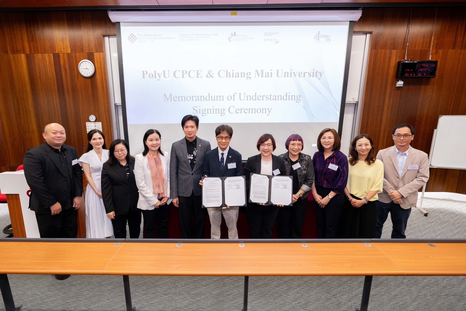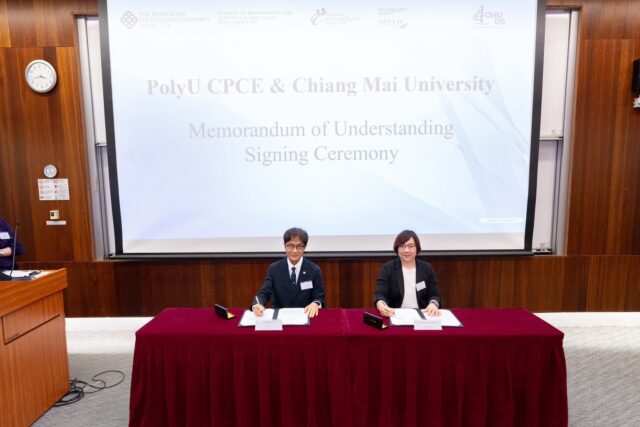 วันที่ 20 สิงหาคม 2568 คณะบริหารธุรกิจ มหาวิทยาลัยเชียงใหม่ (CMUBS) ร่วมพิธีลงนามบันทึกข้อตกลงความร่วมมือทางวิชาการ (MOU) กับ College of Professional and Continuing Education Limited, The Hong Kong Polytechnic University (CPCE, PolyU) ณ เขตบริหารพิเศษฮ่องกง แห่งสาธารณรัฐประชาชนจีน โดยมี ผศ. ดร.เขมกร ไชยประสิทธิ หัวหน้าภาควิชาการจัดการและการเป็นผู้ประกอบการ ทำหน้าที่ผู้แทนคณบดีคณะบริหารธุรกิจ เข้าร่วมพิธีลงนาม พร้อมด้วย รศ. ดร.อรพิณ สันติธีรากุล ที่ปรึกษาหลักสูตรบริหารธุรกิจบัณฑิต สาขาวิชาการจัดการธุรกิจบริการ ร่วมในโอกาสสำคัญครั้งนี้ เพื่อสานต่อความร่วมมือกิจกรรมด้านวิชาการ อาทิ การแลกเปลี่ยนอาจารย์และนักศึกษา การทำวิจัยร่วม และการจัดกิจกรรมเสริมหลักสูตร เพื่อยกระดับการเรียนการสอนให้มีมาตรฐานสากล รวมทั้งเสริมสร้างความสัมพันธ์อันดีกับสถาบันการศึกษาชั้นนำในระดับนานาชาติ