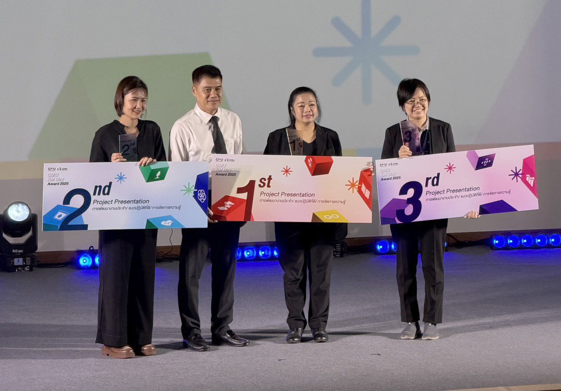 คณะบริหารธุรกิจ มหาวิทยาลัยเชียงใหม่ (CMUBS) ขอแสดงความยินดีกับ คุณอัญชลี วิเลิศศักดิ์ หัวหน้างานบริหารงานวิจัย บริการวิชาการ และวิเทศสัมพันธ์ ที่สามารถคว้ารางวัลชนะเลิศอันดับ 1 ประเภทการพัฒนางานประจำ (Routine to Research) ในงาน CMU KM DAY AWARD 2025 : ขับเคลื่อนองค์ความรู้ สู่เป้าหมายการพัฒนาที่ยั่งยืน (The Power of Knowledge towards SDGs) ซึ่งจัดโดยกองทรัพยากรทุนมนุษย์ มหาวิทยาลัยเชียงใหม่ ณ NSP Rice Grain Auditorium อาคารอำนวยการอุทยานวิทยาศาสตร์ภาคเหนือ จังหวัดเชียงใหม่ โดยรางวัลดังกล่าวสะท้อนศักยภาพของบุคลากรสายสนับสนุนของคณะบริหารธุรกิจ มหาวิทยาลัยเชียงใหม่ ที่มุ่งมั่นพัฒนางานประจำให้เกิดนวัตกรรมและคุณค่าใหม่ ๆ เพื่อยกระดับคุณภาพการทำงาน และสนับสนุนการขับเคลื่อนองค์กรสู่ความเป็นเลิศอย่างยั่งยืน