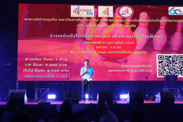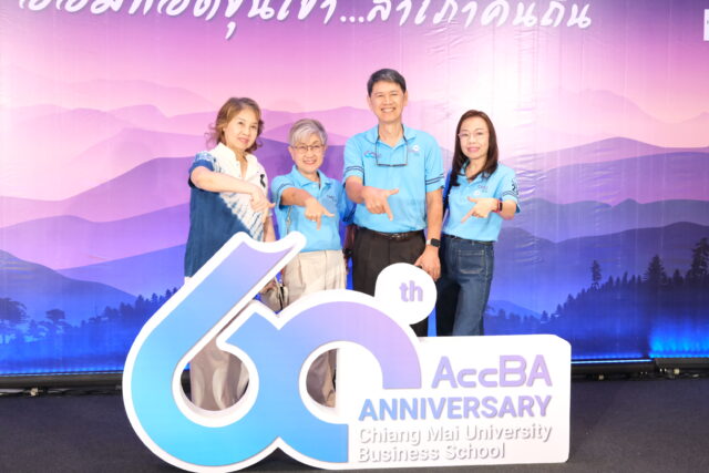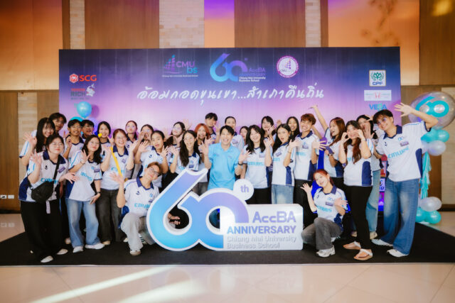 วันที่ 22 พฤศจิกายน 2568 คณะบริหารธุรกิจ มหาวิทยาลัยเชียงใหม่ (CMUBS) ผสานพลังกับ สมาคมนักศึกษาเก่าบัญชีและบริหารธุรกิจ มหาวิทยาลัยเชียงใหม่ นำโดยคุณบุญรัตน์ ตรีวัฒนาวงศ์ นายกสมาคมฯ และ ศิษย์เก่าคณะบริหารธุรกิจ รุ่นที่ 28 ร่วมกันจัดงาน “60 ปี AccBA อ้อมกอดขุนเขา สำเภาคืนถิ่น” ณ โรงแรมเชียงใหม่แกรนด์วิว เพื่อร่วมเฉลิมฉลองวาระครบรอบ 60 ปีคณะบริหารธุรกิจ สร้างพื้นที่เชื่อมสายสัมพันธ์ของชาว AccBA ทุกช่วงวัย โดยมีผู้เข้าร่วมงานกว่า 700 คน