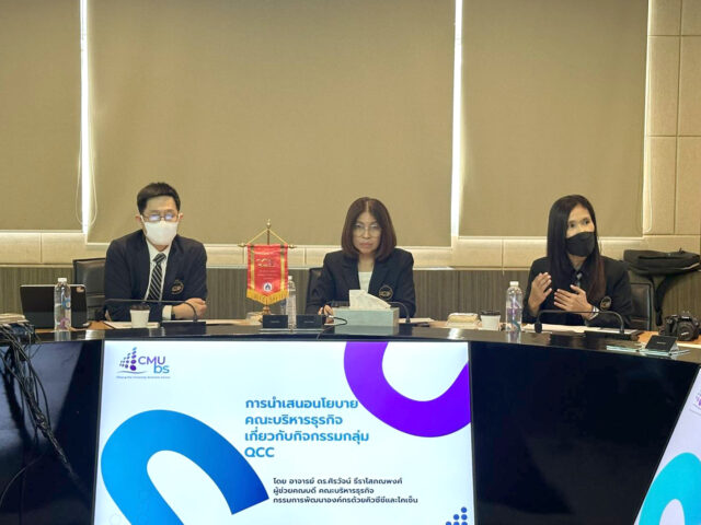 ทั้งนี้ ทีม Questionneers นำทีมโดยคุณอัญชลี วิเลิศศักดิ์ พร้อมด้วยสมาชิกในทีม คุณณัฐปภัสร์ บวรภัสพงศ์ คุณผุสดี ใจชุ่มใจ และคุณพิชชากร เกตุเนียม ร่วมนำผลงานในหัวข้อ “เพิ่มประสิทธิภาพการให้ข้อมูล กฎระเบียบ ข้อบังคับ ด้านงานวิจัย คณะบริหารธุรกิจ มหาวิทยาลัยเชียงใหม่” โดยถ่ายทอดลำดับขั้นตอนการทำ QCC การวิเคราะห์ปัญหา แนวทางปรับปรุงกระบวนการทำงาน รวมถึงผลลัพธ์เชิงคุณภาพที่เกิดขึ้นจริง ก่อนเข้าสู่ช่วงตอบข้อซักถามเชิงลึกและการตรวจสอบเอกสารตามหลักเกณฑ์ของเวที Thailand Quality Prize ซึ่งบรรยากาศการตรวจเยี่ยมเป็นไปอย่างเข้มข้น ทีม Questionneers สามารถนำเสนอข้อมูลได้อย่างเป็นระบบ สะท้อนศักยภาพของบุคลากร CMUBS ในการพัฒนาคุณภาพงานอย่างต่อเนื่องและสร้างผลลัพธ์ที่ยั่งยืนให้แก่องค์กร