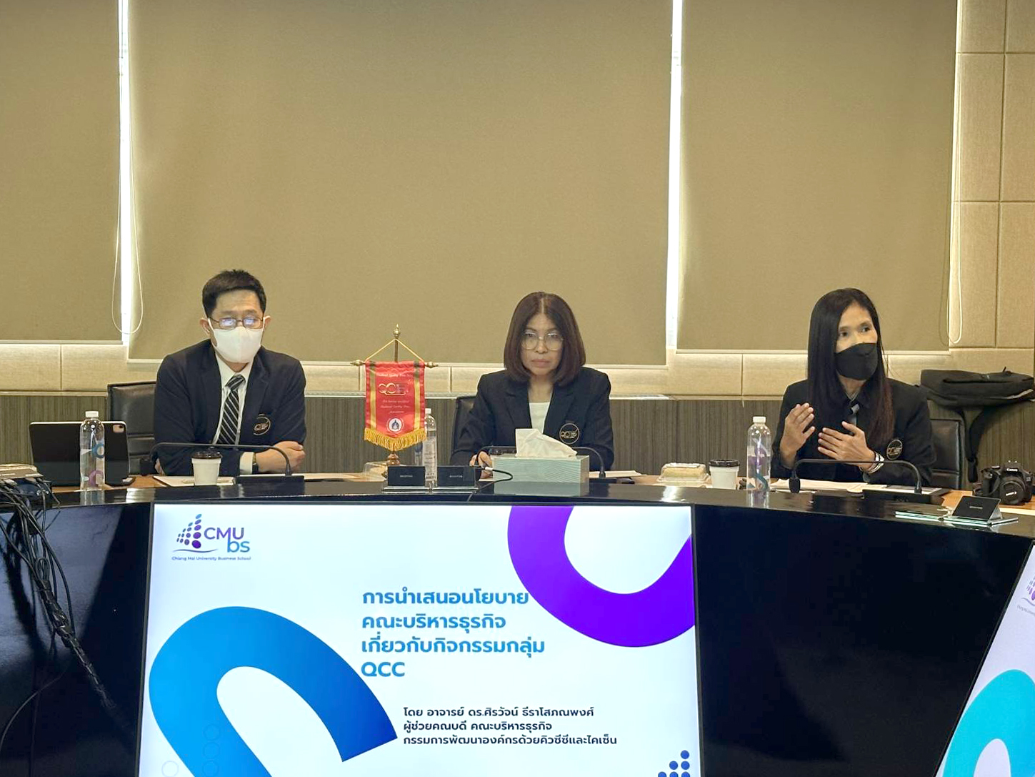 วันที่ 27 พฤศจิกายน 2568 คณะบริหารธุรกิจ มหาวิทยาลัยเชียงใหม่ อาจารย์ ดร.ศิรวัจน์ ธีราโสภณพงศ์ ผู้ช่วยคณบดีคณะบริหารธุรกิจ พร้อมด้วย คุณฐิตารีย์ ยิ้มประเสริฐ หัวหน้างานบริหารทั่วไป ให้การต้อนรับคุณณุวัฒน์ จันทร์ถาวร และคุณนิจฉัย ชาติชวนชม คณะกรรมการผู้ทรงคุณวุฒิจากเวที Thailand Quality Prize 2026 ณ สถานปฏิบัติงานจริง ณ ห้องประชุมหกเหลี่ยม คณะบริหารธุรกิจ มหาวิทยาลัยเชียงใหม่ ในโอกาสเข้าตรวจประเมินผลงานกิจกรรมกลุ่ม QCC ณ สถานปฏิบัติงานจริง โดยเป็นกระบวนการหนึ่งในการแข่งขัน Quality Control Circle หรือ QCC ซึ่งถือเป็นระบบหนึ่งในการบริหารจัดการองค์กรที่มีประสิทธิภาพ สามารถวัดผลเชิงรูปธรรมได้อย่างชัดเจน โดยผ่านกระบวนการที่มีส่วนร่วมของบุคลากรในองค์กรในการปรับปรุงพัฒนางานที่ตนเองรับผิดชอบสู่การพัฒนาองค์กร