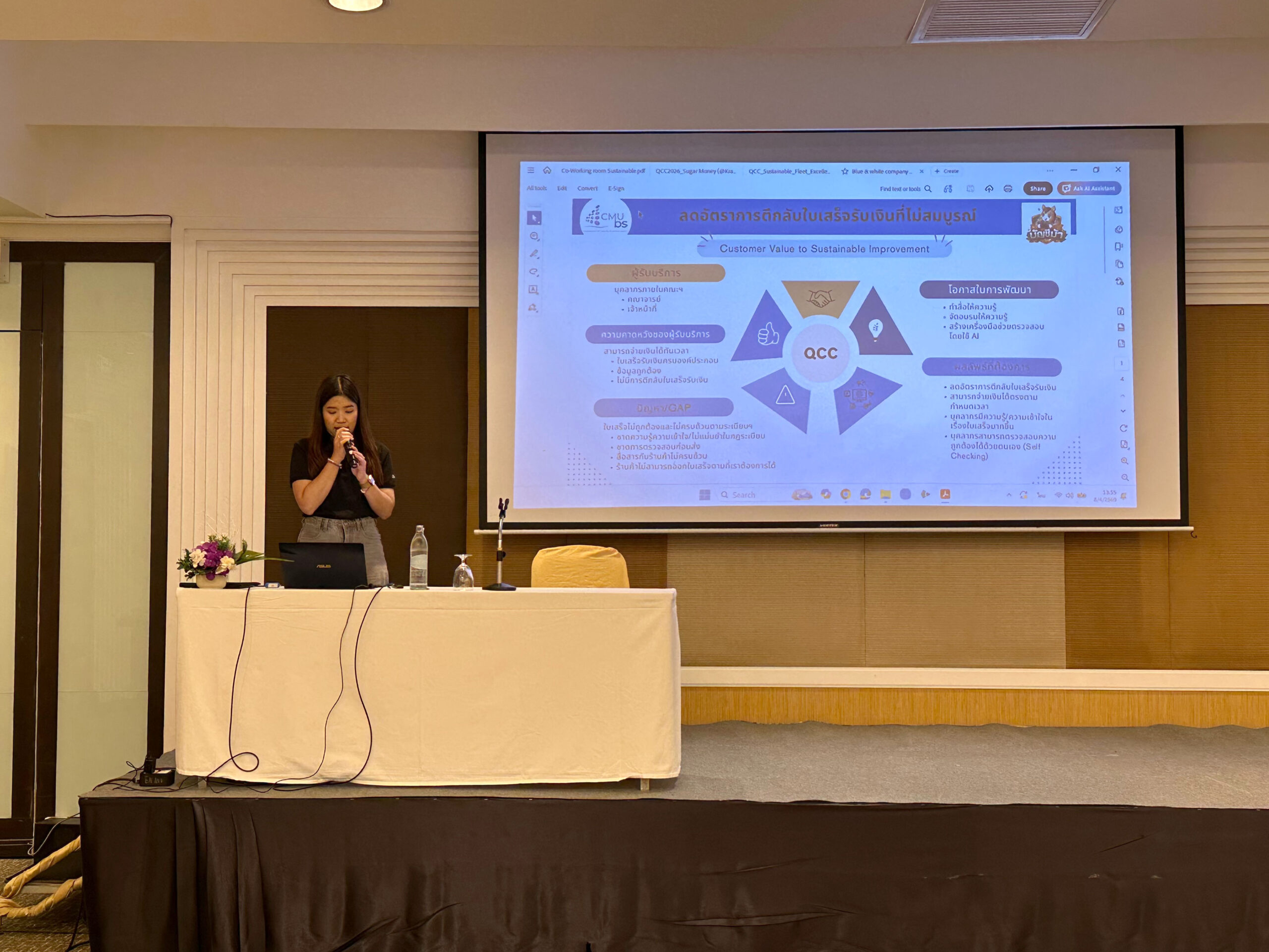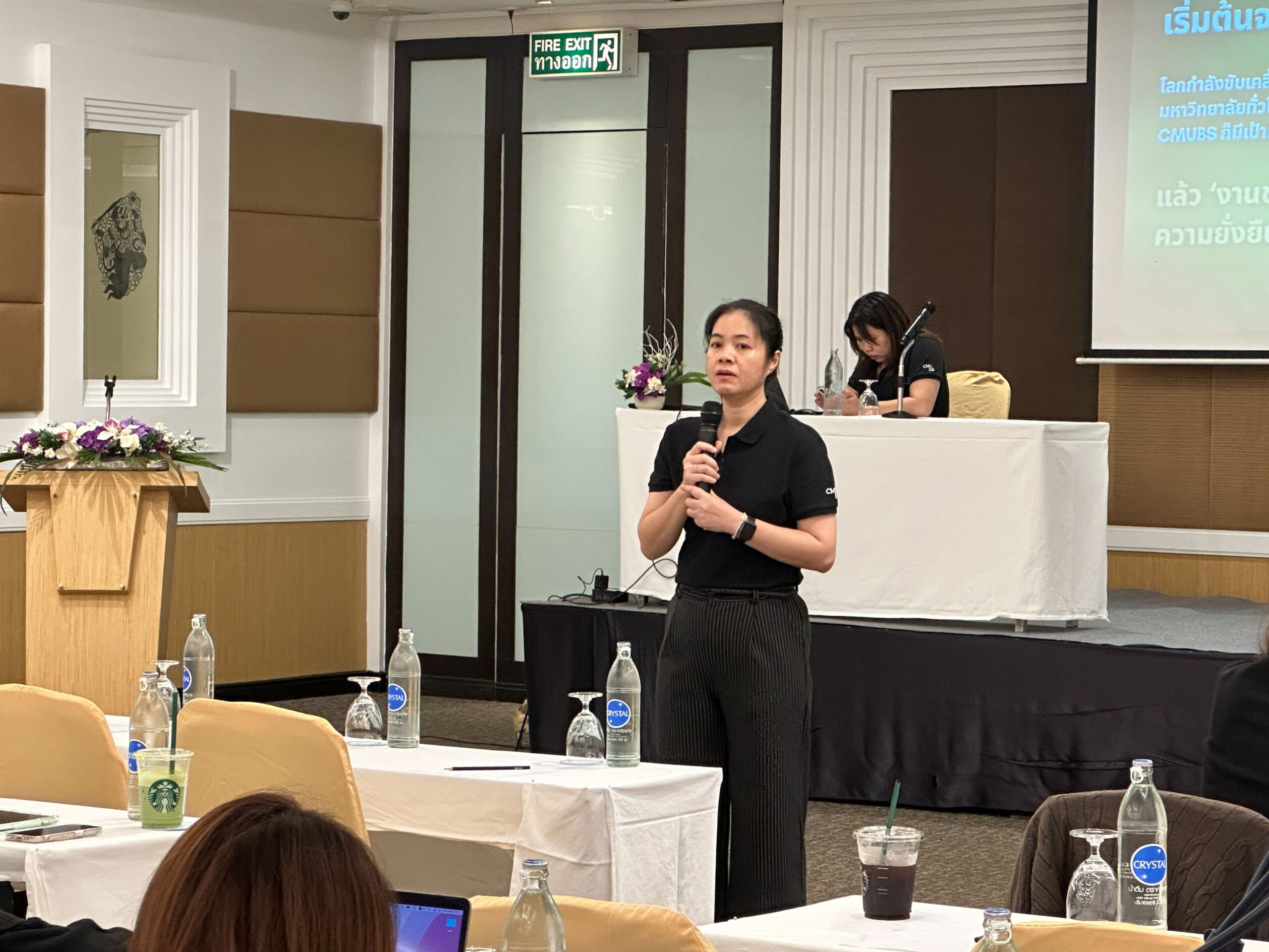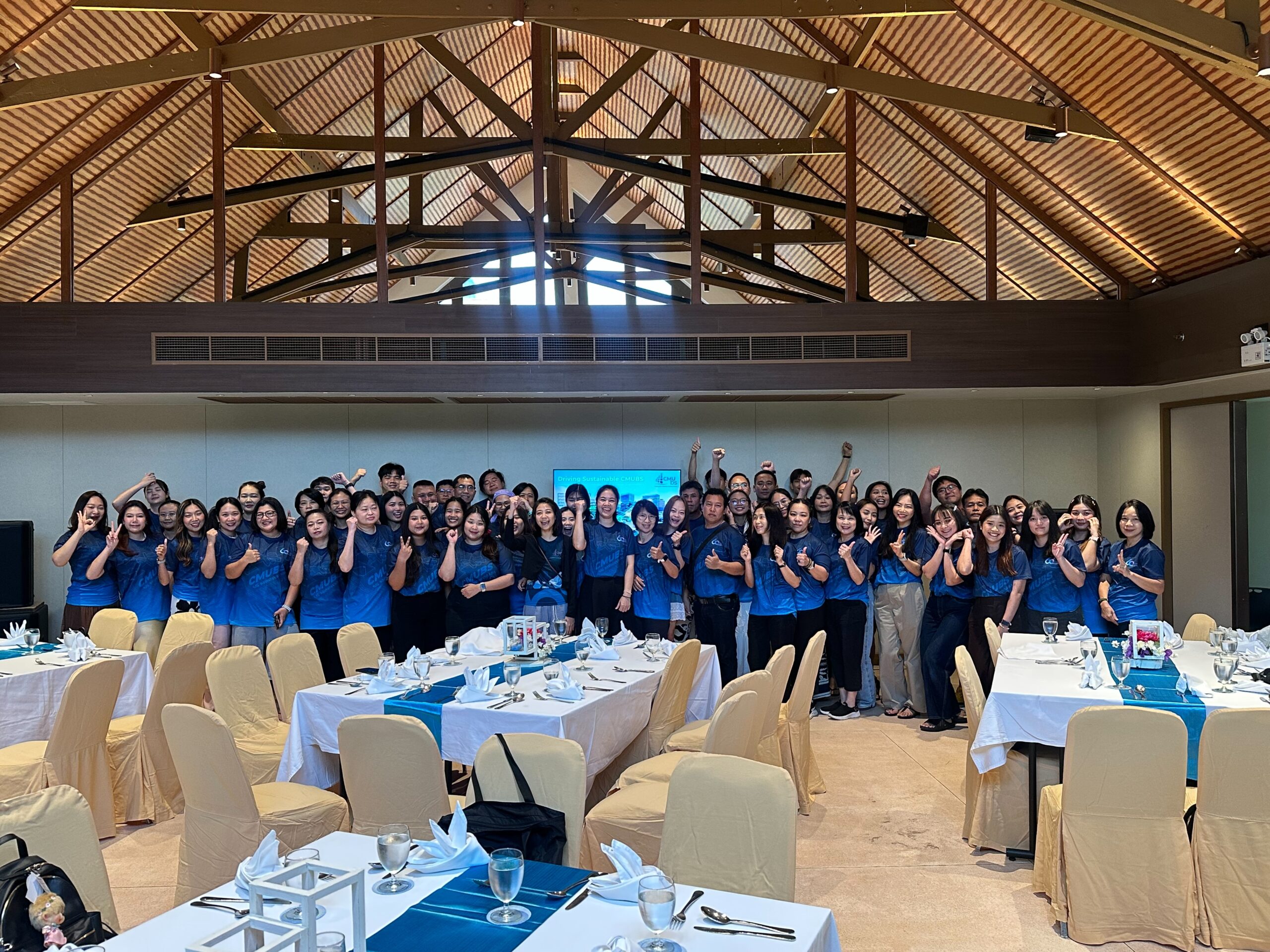 โดยกิจกรรมในโครงการ บุคลากรได้ศึกษาดูงาน ปกาสัย รีสอร์ท เรียนรู้การบริหารจัดการองค์กรต้นแบบ "Ecoscape Resort" ที่เน้นการจัดการแบบ Zero-waste และแนวทางลดคาร์บอนอย่างเป็นรูปธรรม การสัมมนาเชิงปฏิบัติการ Sustainable CMUBS & Workshop โดยบุคลากรร่วมระดมความคิดและนำเสนอผลงานกลุ่ม (Sustainable Project) ที่บูรณาการกับกิจกรรมกลุ่ม QCC เพื่อบูรณาการองค์ความรู้สู่การพัฒนางานจริง พร้อมลงพื้นที่ศึกษาดูงานยังวิสาหกิจชุมชนบ้านไหนหนัง เพื่อศึกษาต้นแบบการท่องเที่ยวสีเขียว แบบ Low Carbon และแนวปฏิบัติที่เป็นเลิศจากโมเดล "เลี้ยงผึ้งเพื่อรักษาป่า"