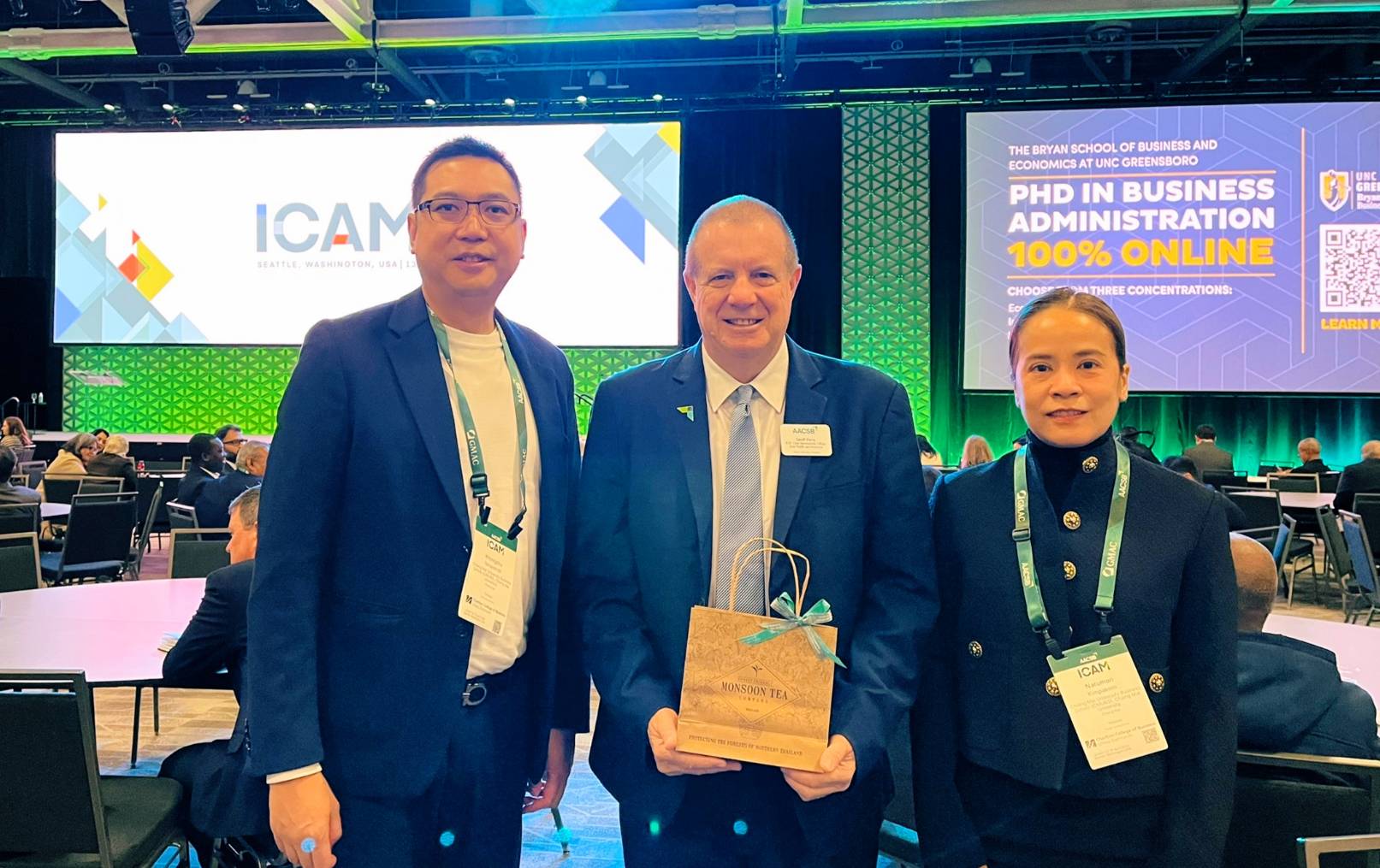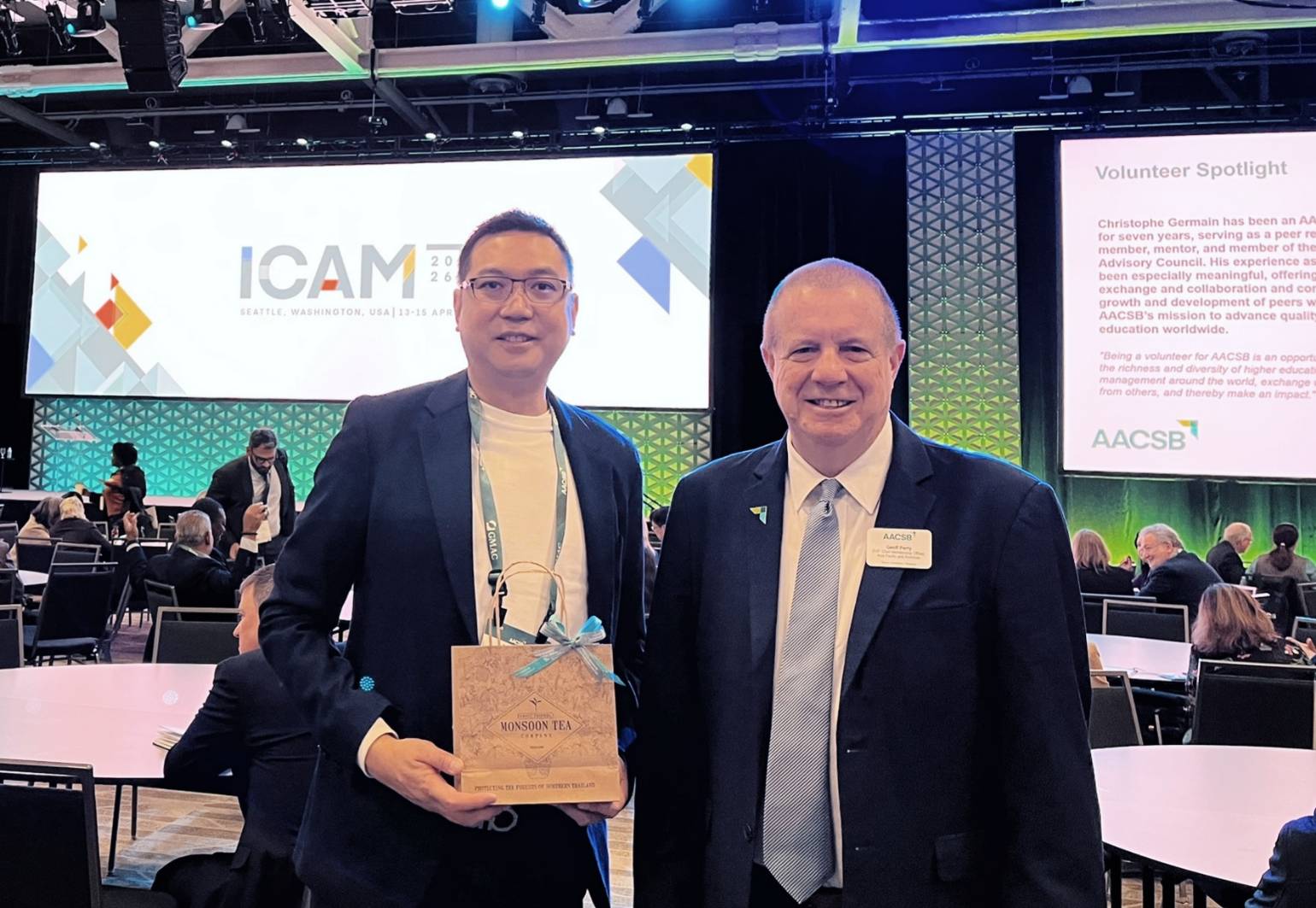 ต่อมา คณบดีพร้อมด้วยผู้บริหารคณะ ได้แก่ รองศาสตราจารย์ ดร.นฤมล กิมภากรณ์ รองคณบดี และผู้ช่วยศาสตราจารย์ ดร.ตุลยา ตุลาดิลก ได้เข้าร่วมการประชุมวิชาการระดับนานาชาติ International Conference and Annual Meeting (ICAM) ระหว่างวันที่ 13–15 เมษายน 2569 ณ เมืองซีแอตเทิล รัฐวอชิงตัน สหรัฐอเมริกา ซึ่งเป็นเวทีหลักของเครือข่าย AACSB ที่รวบรวมนักวิชาการและผู้นำจากกว่า 60 ประเทศทั่วโลก เพื่อแลกเปลี่ยนองค์ความรู้เชิงลึก และขับเคลื่อนนวัตกรรมด้านการศึกษาด้านบริหารธุรกิจให้สอดรับกับการเปลี่ยนแปลงของโลก